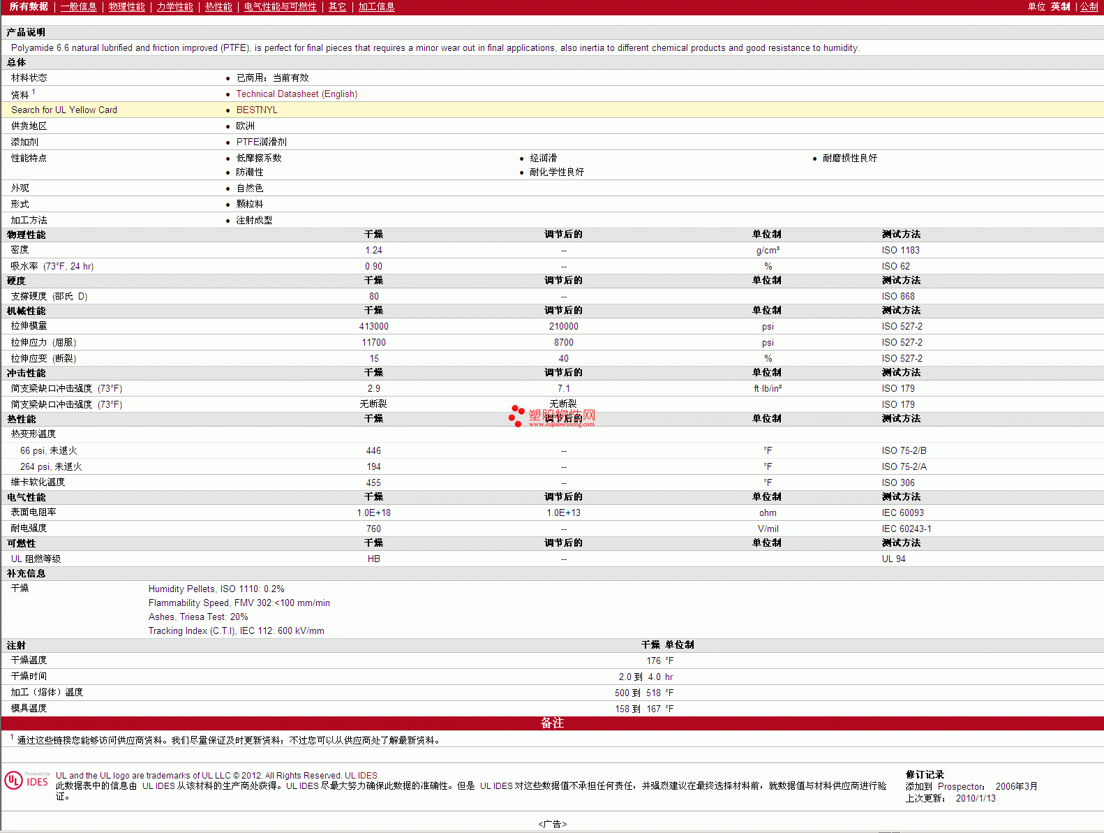 需了解BESTNYL PTFE SE00VI01AT 物性表材质证明、ROHS(SGS)报告、物质安全资料表(MSDS)、UL黄卡等可来电咨询:赵先生:13424755533或QQ: 27660005