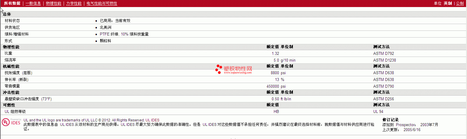 其他工程塑料物性表