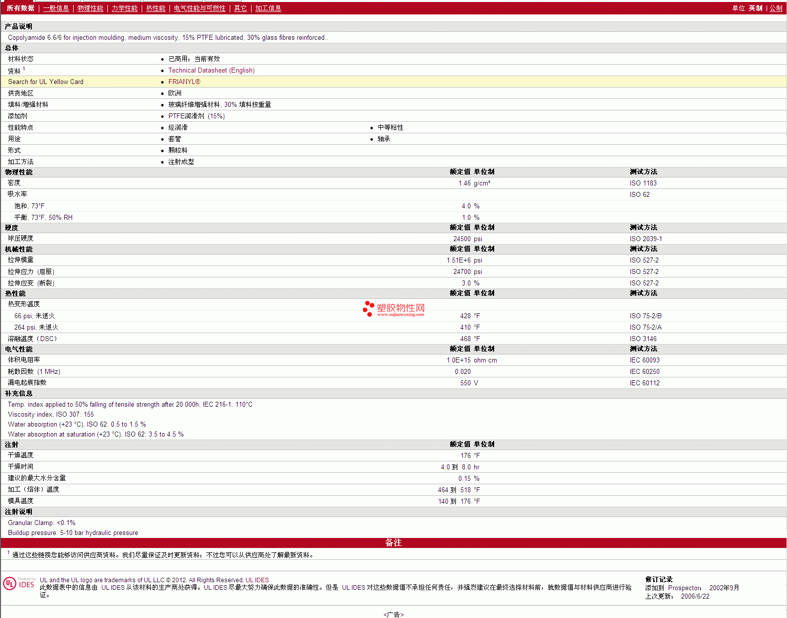 更多FRIANYL PTFE C73 TFGV1530 物性表报价,图片、材质证明、UL黄卡、物质安全资料表(MSDS)等可来电咨询赵先生:13424755533或QQ: 27660005