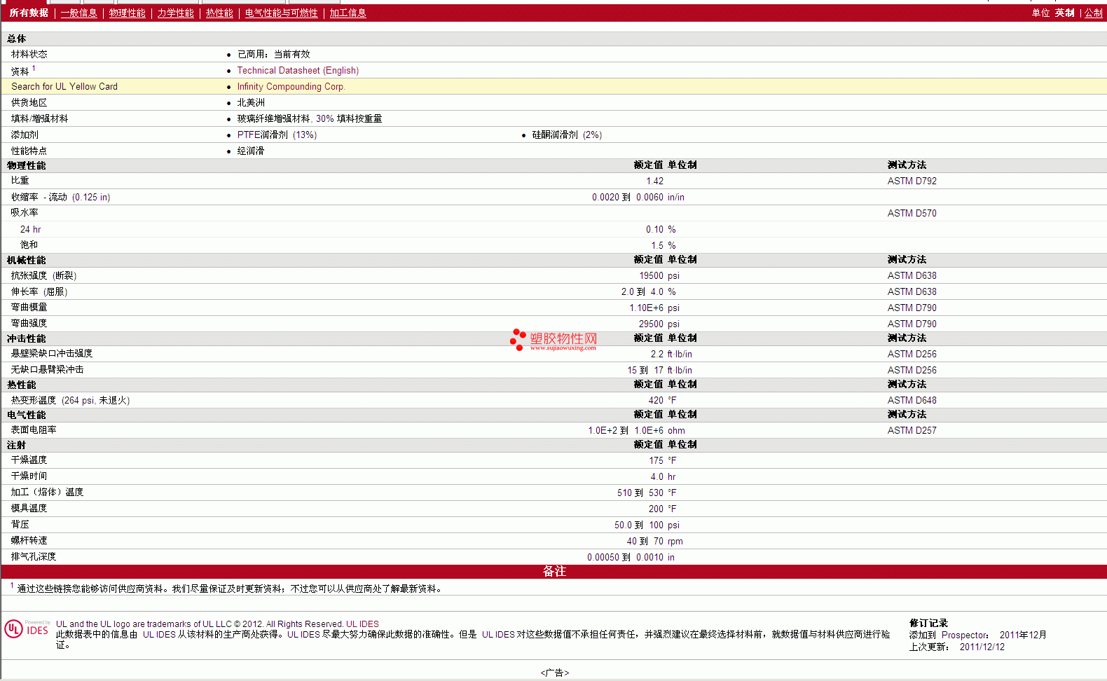INLUBE PTFE PA612GF30TF13SI2 物性表