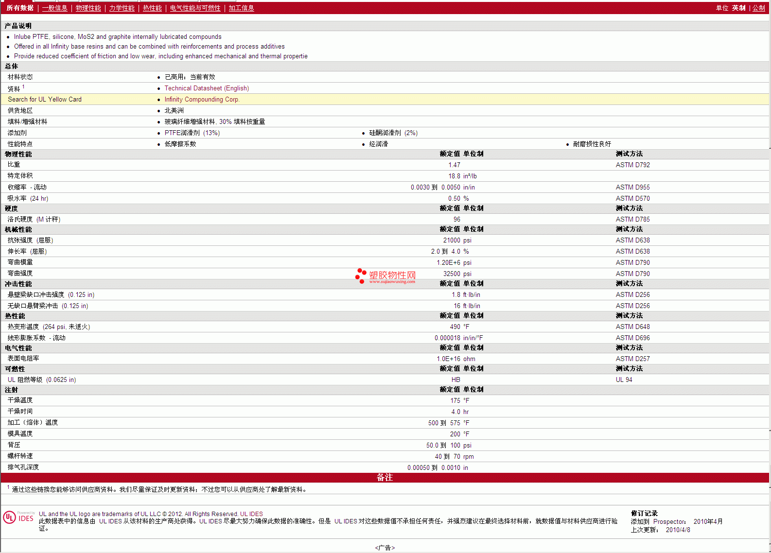 需了解INLUBE PTFE PA66GF30TF13SI2 物性表材质证明、ROHS(SGS)报告、物质安全资料表(MSDS)、UL黄卡等可来电咨询:赵先生:13424755533或QQ: 27660005