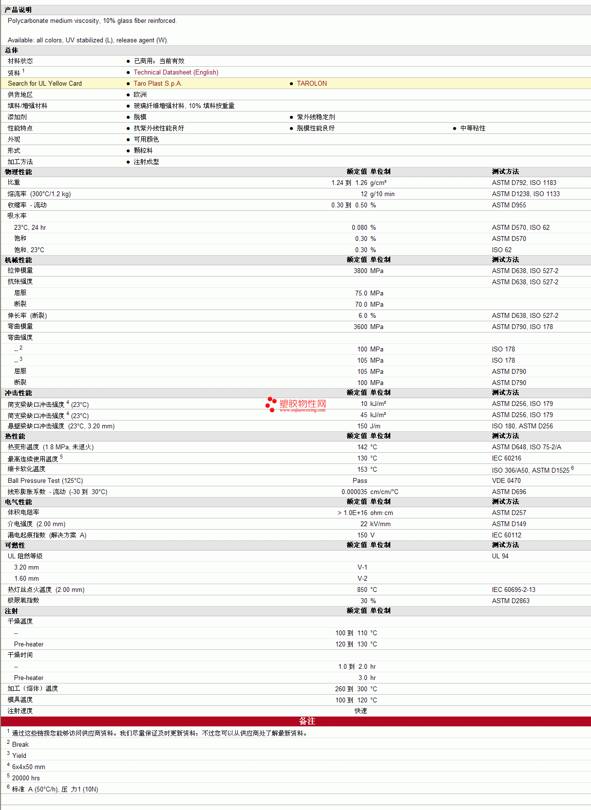 Polycarbonate (PC) PCS60R GF10 V0(x) UL黄卡