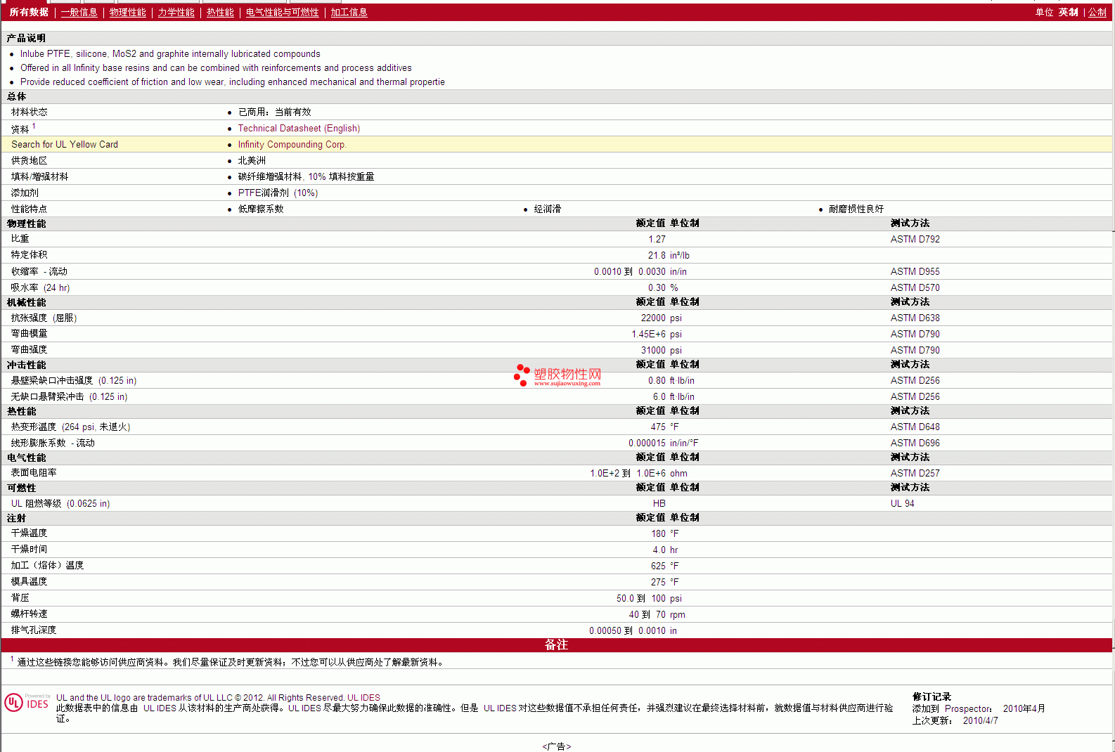 如需了解INLUBE PTFE PPACF10TF10 物性表更多详情,ROHS(SGS)报告、物质安全资料表(MSDS)、材质证明、UL黄卡等,最新行情报价等可来电咨询:赵先生:13424755533或QQ: 27660005