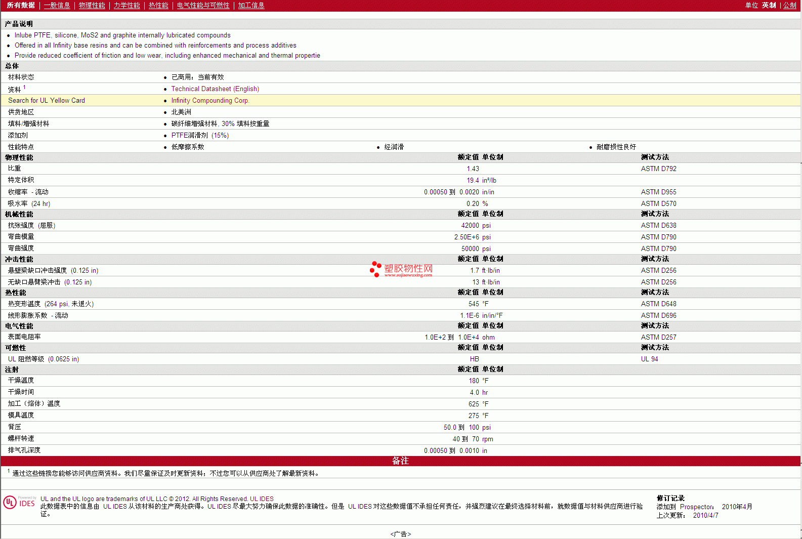 更多 INLUBE PTFE PPACF30TF15 物性表图片,报价、物质安全资料表(MSDS)、材质证明、UL黄卡等,最新行情报价等可来电咨询赵先生:13424755533或QQ: 27660005