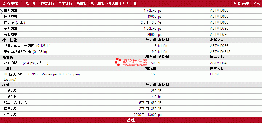 | 机械性能 | 额定值 | 单位制 | 测试方法 |