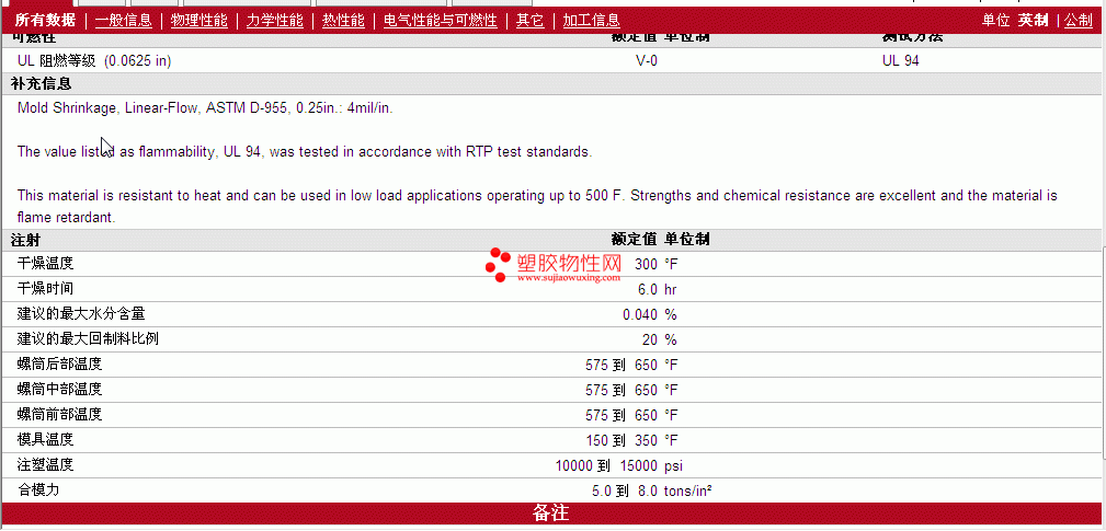 | 机械性能 | 额定值 | 单位制 | 测试方法 |
