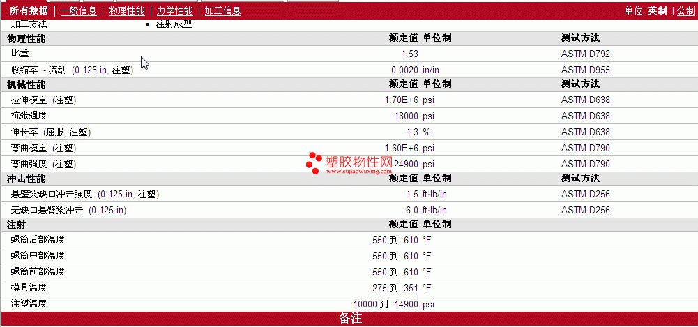 | 机械性能 | 额定值 | 单位制 | 测试方法 |