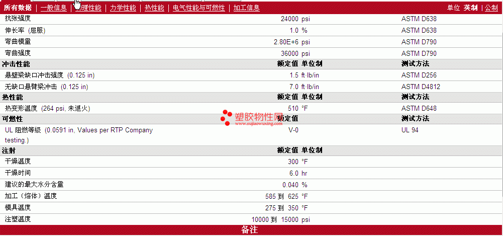 | 机械性能 | 额定值 | 单位制 | 测试方法 |