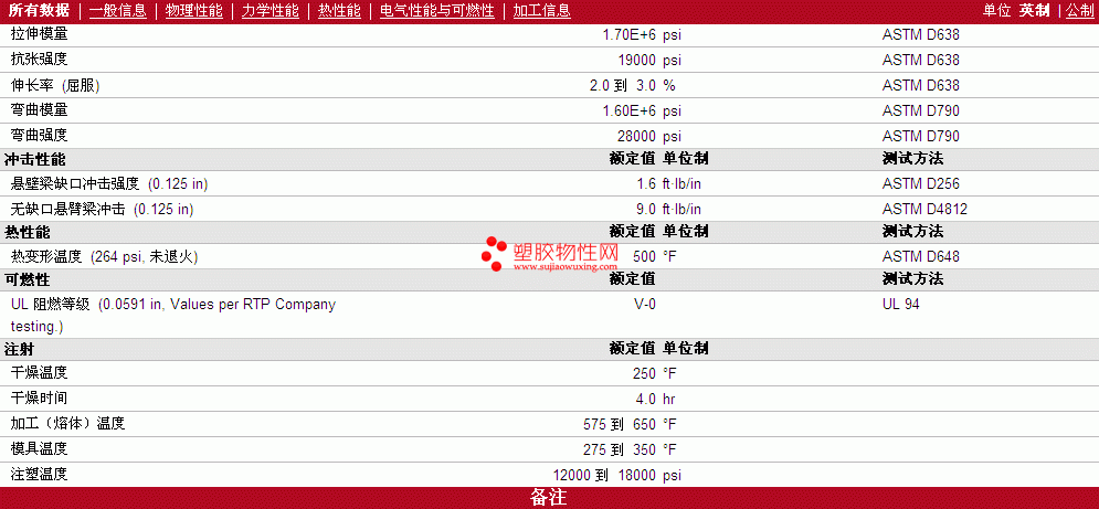 | 机械性能 | 额定值 | 单位制 | 测试方法 |